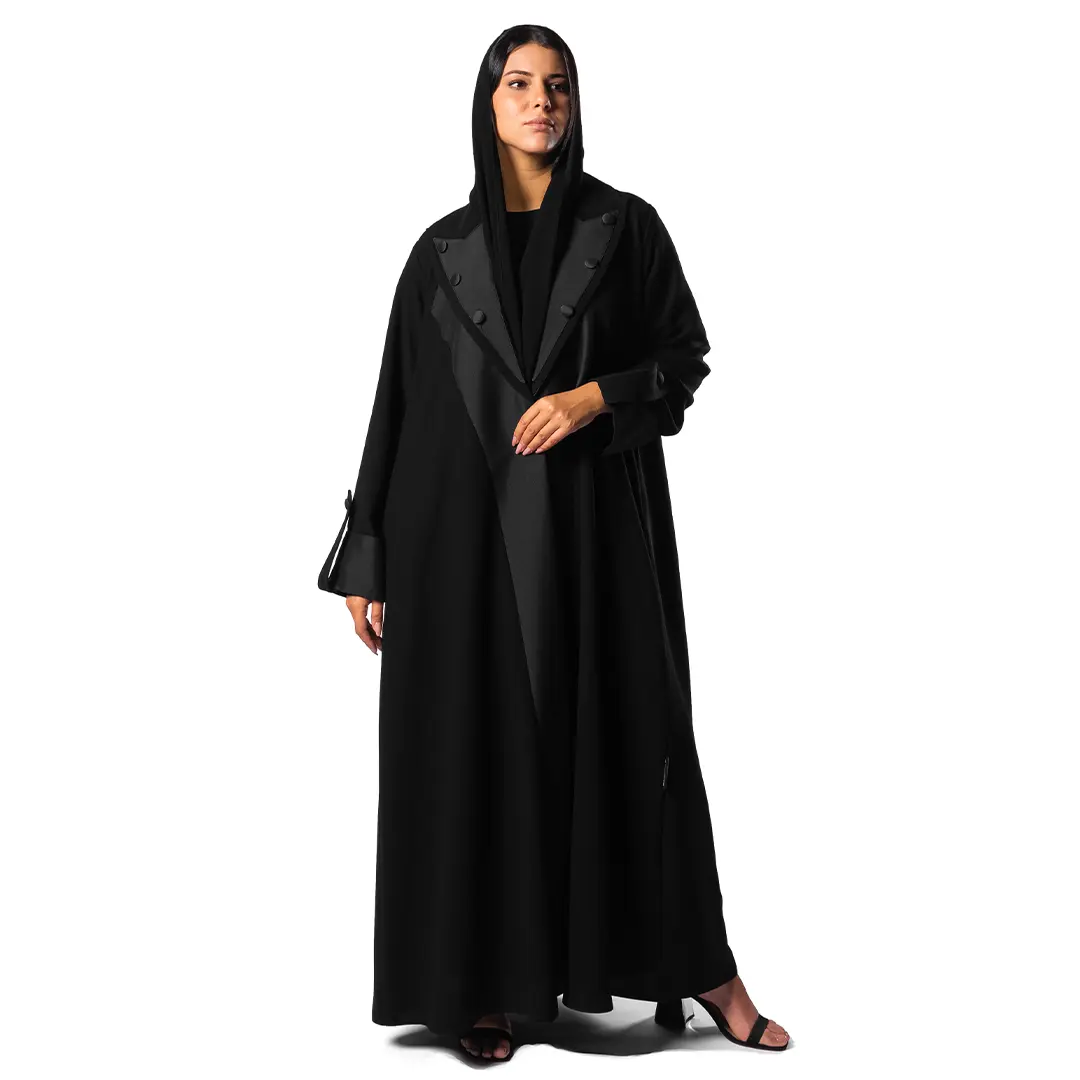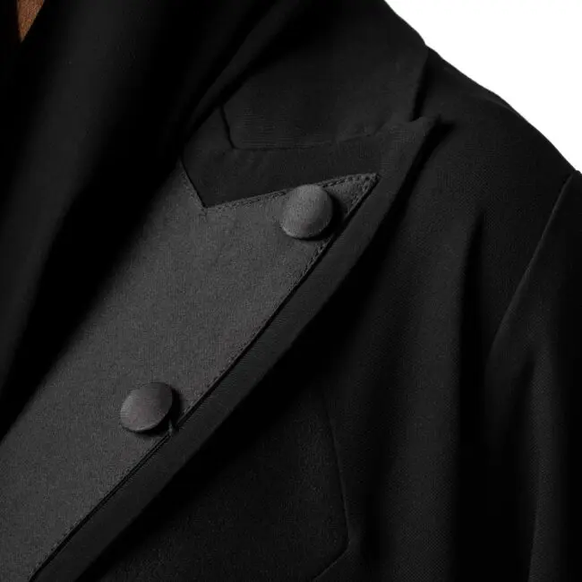 Fabric: Black Cuba fabric with the touch of Satan Five button on collar and open chock in the back bottom.