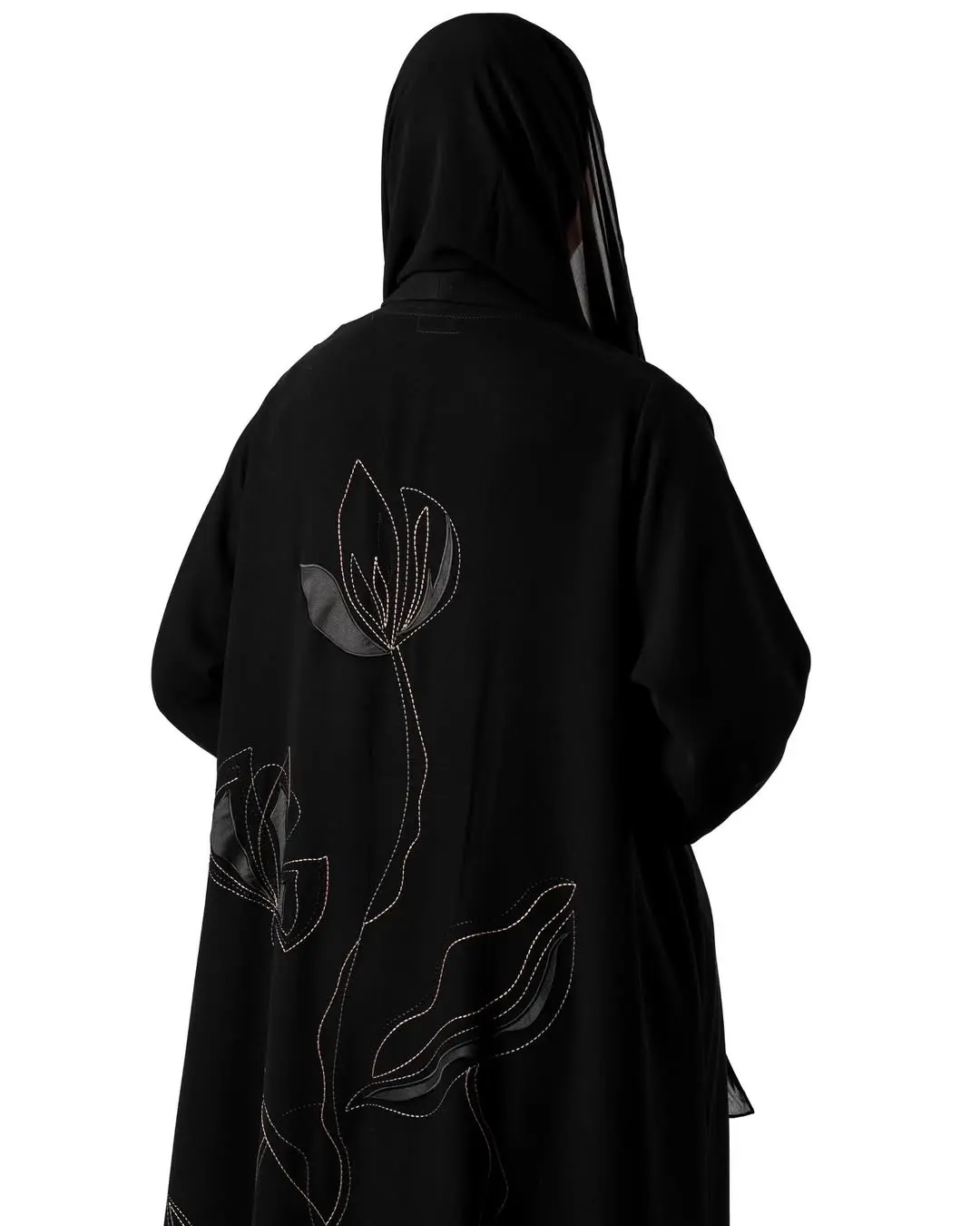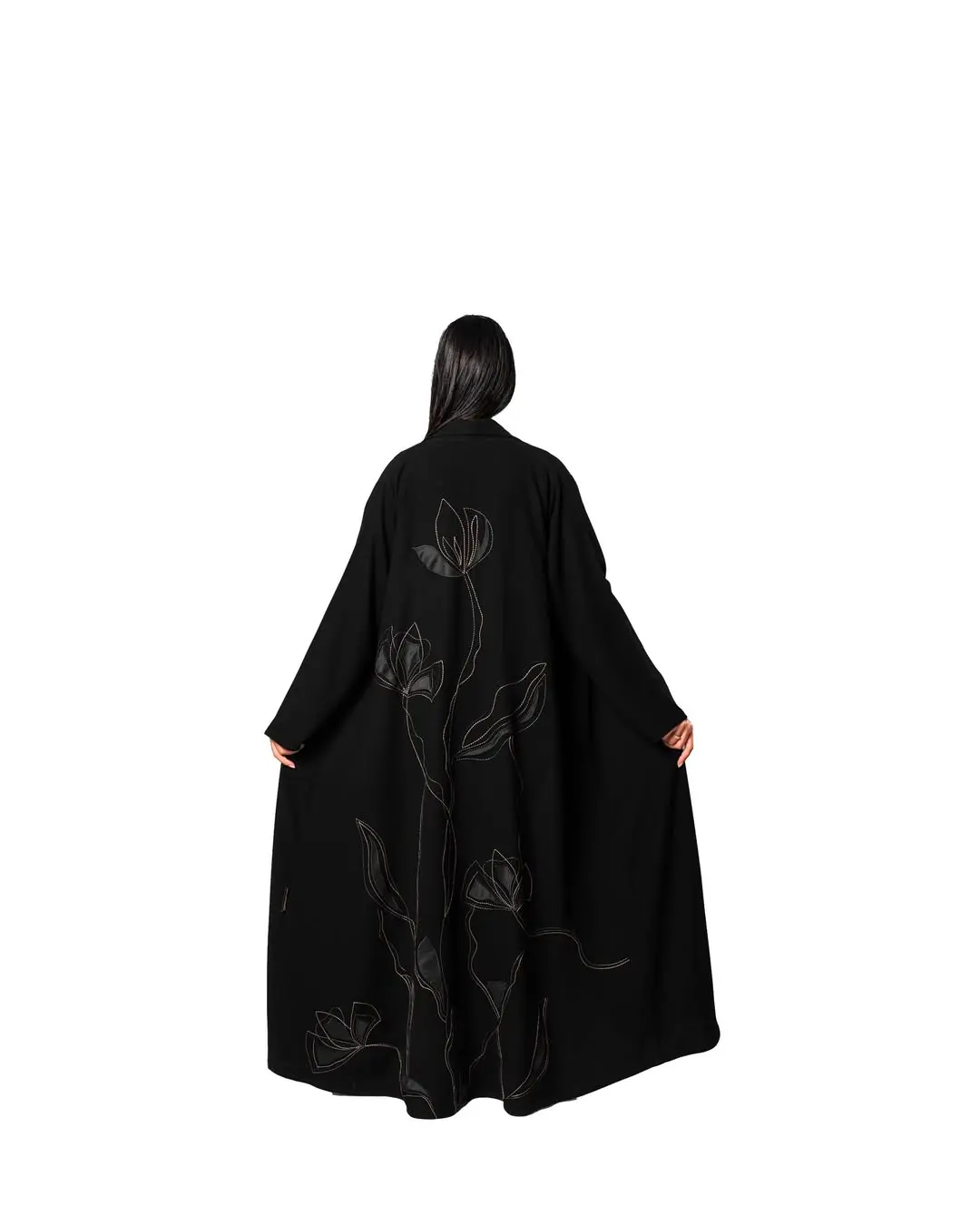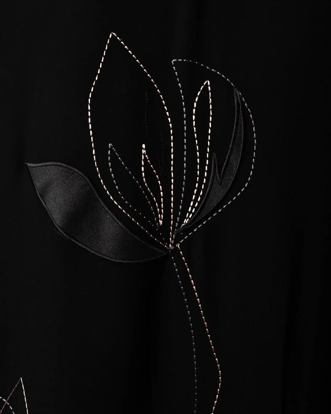 Black cuba fabric with multi-color embroidery with the touch of applique embroidery on the back.